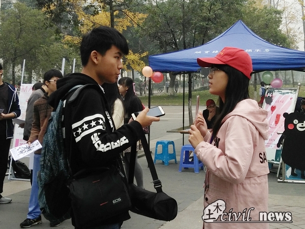 为增强交大学子的献血意识,调动大家献血的积极性,志愿者们先于15、16号两日进行了宣传活动,现场宣传志愿者们认真地进行摊位的布置,可爱的熊本熊和手绘的献血车吸引着来往同学的眼球,志愿者们的热情宣传还得到了“歪果仁”的支持,为了本次宣传我们还特地拍摄了无偿献血宣传视频,从多方面提高了交大师生的献血知识水平,有效地调动了同学们的热情,为之后的血车进校的开展奠定了良好的基础。