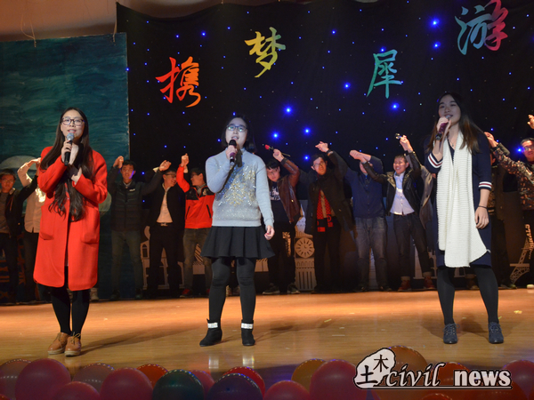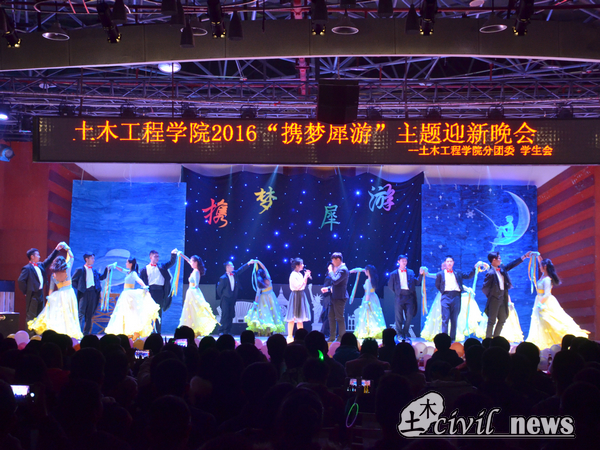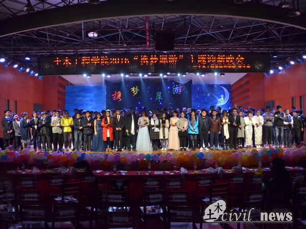 在一声声渐轻的“很爱很爱你”中,晚会落下了帷幕,所有表演者走上舞台合影。“心怀梦想,携梦犀游”,灯光和身影的逝去,是一时的结束,永远不会谢幕的,是土木人永远的信心,坚定的步伐,和追梦的赤子之心。