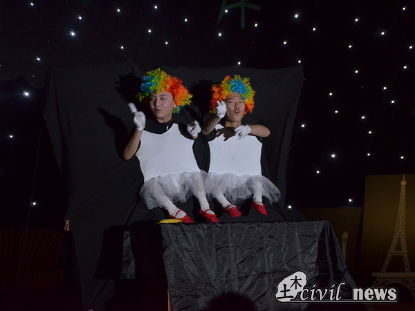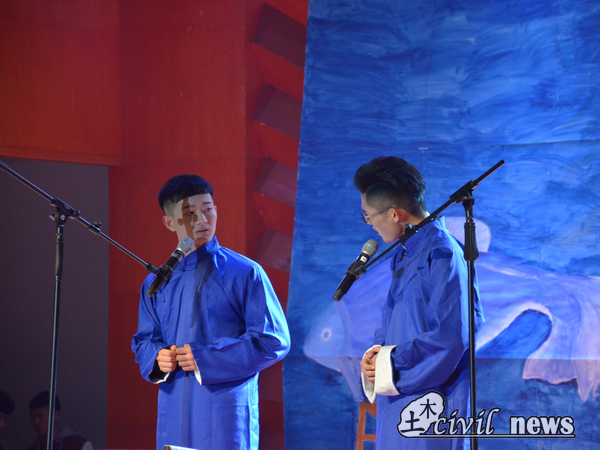 因为误会而展开的话剧《高铁换座》以幽默的剧情换来了全场观众的欢声笑语,性吧同学们表演的不仅是一个笑话,也是展现现实的缩影:误会不可避免,人与人之间更应该用心沟通。园区和科创的歌舞《爱的华尔兹》让土木这个男女比例7:1的学院学生们齐齐发出感叹。16级土木17、18、19班新生们表演了《海阔天空》、《友情岁月》、《真的爱你》粤语串烧;而1班同学们所演出的小人舞,以其丰富搞怪的表情和动作表演,博得了同学们的阵阵掌声。除却歌舞话剧,中国传统的相声也是必不可少的,就业和学业的《学院闲话》也为这次晚会带上了几分中国风。