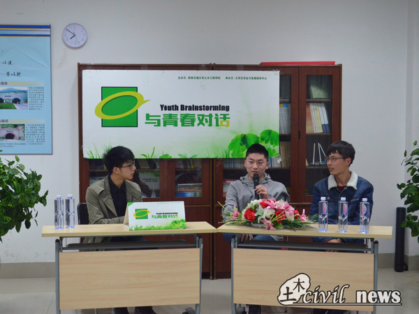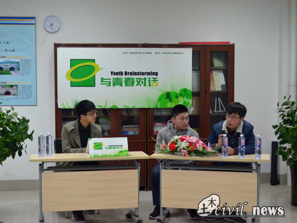 随后,王皓正与张金龙谈起了参加结构设计竞赛的经历。他们回忆起比赛中的酸甜苦辣,并一致认为校赛为国赛一等奖打下了坚实的基础。他们提议每一个土木人都去体验这样的过程,因为流下的每一滴汗水、结识的每一位朋友都是极其宝贵的财富。