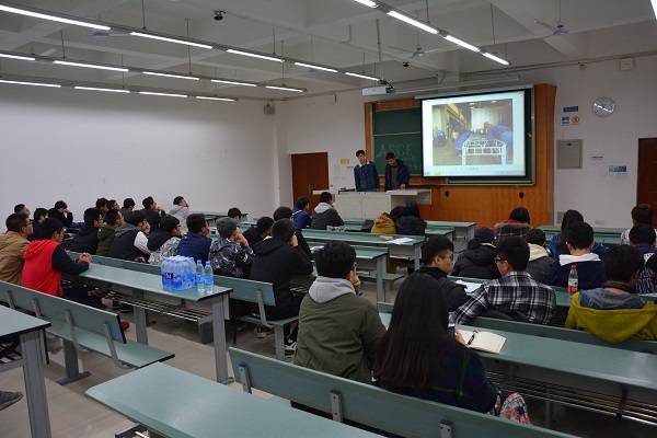 在“赛前准备”部分,“付出”是王皓正、王乾屾两名队员提到最多的字眼。校内选拔时详细的答辩稿、节点实验、工厂施工和改进、拼装练习时一次又一次的重复,让我们看到了我校土木学子艰苦卓绝的奋斗精神、孜孜不倦的求知态度。其后在讲到“细致”二字时,王皓正同学颇有心得,讲述了拼装场地布置以及施工图纸制作途中出现的小插曲,让人受益良多。