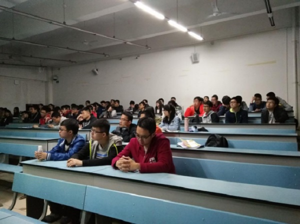 记者注意到,当观看到将盾构机的刀盘吊装进地下井、与盾构机对接的时候,大三的几位同学在座位上开始就具体的工程实际问题小声讨论了一翻。他们回忆着在课堂上下、书本内外积累到的知识与经验,将抽象的概念、图片与现实结合起来。而低年级的同学也同样看得很认真。16级的大一新生,虽然刚刚入学仅两个月的他们还没有接受专业知识的学习,也缺乏工程实际的见闻积累,但是他们仍然看得十分投入。尤其是来自16级11班的刘静同学,记者注意到,在播放视频的整个过程中,他看得目不转睛,陶醉其中。