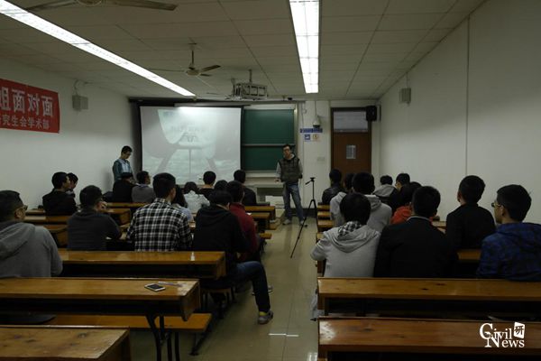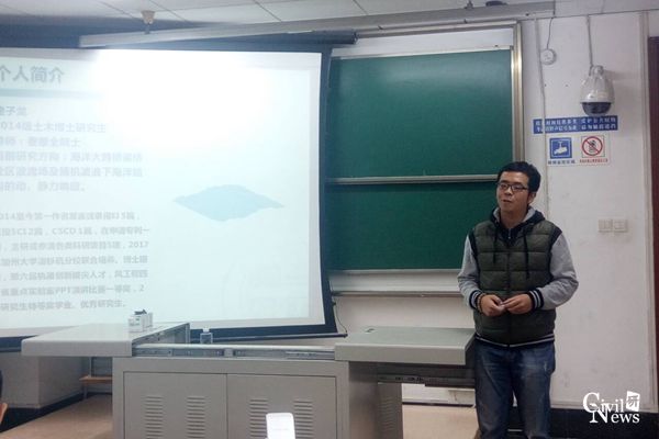 研究生会学术部承办的“土木大讲堂之师兄师姐面对面”首场分享会在九里校区4304A举行。本次分享会的主讲人为2014级土木博士研究生遆子龙。