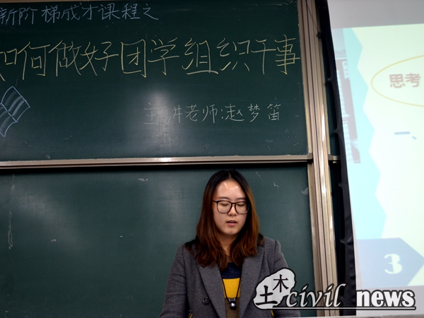11月10日,新阶梯课程“新生如何做好团学组织干事”在二教开讲。授课老师有赵梦迪,商姚,刘萍等,参加本课堂的学员均为大一团学组织干事。老师们将在课堂上为同学们释疑解难,传授经验;同时也引导同学们积极讨论,独立思考,描述自己心目中的优秀干事。