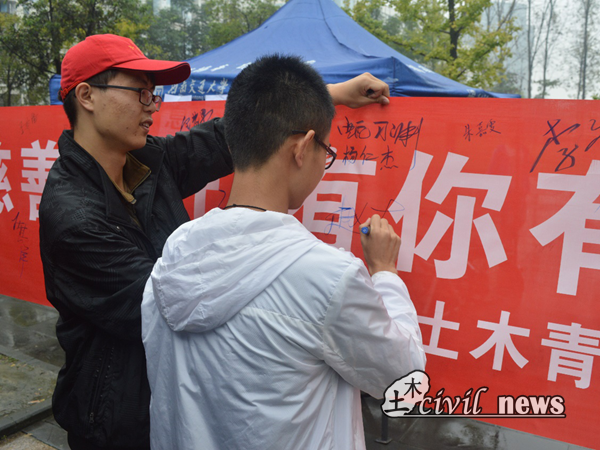 土木学院青年志愿者协会红十字应急服务队和无偿献血志愿宣传服务队联合举办的“成都慈善日”活动正式开始。