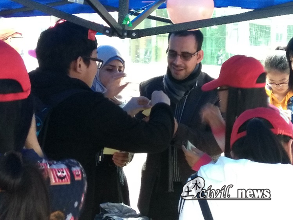 正式活动时,志愿者们早早到达了指定地点,开始了活动前的准备。活动主要分为三部分:“写下你的善行”——虽然现在的我们没有顶天立地的能力,也不能做什么惊天动地的大事,但是生活中每一件小小的善事都是值得骄傲的;“为孩子们折纸”——亲手为爱心小学的孩子们做一件小手工(看,国际友人都来帮忙啦);“横幅签名”——留下你的名字,证明你曾经来过。