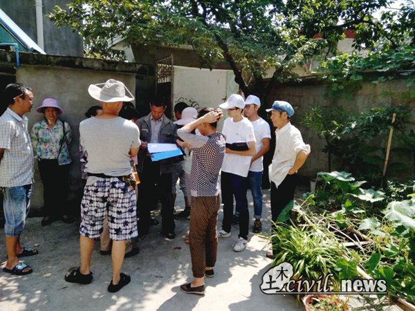 上午九点三十,志愿者们来到村居民家中。乡长介绍了优胜村新建住房的基本情况以及国土局的相关政策。现在农村新建房屋乱建超建现象比较严重,有些村民的思想观念有待改变,存在攀比之风。这次工作的主要目的就是按照国土局以及县里的相关规定对村民房屋建筑面积清算。同时,乡长强调:“每户人均房屋建筑面积不得超过30平米,对于超建的房屋要给予每平米50元的处罚”。