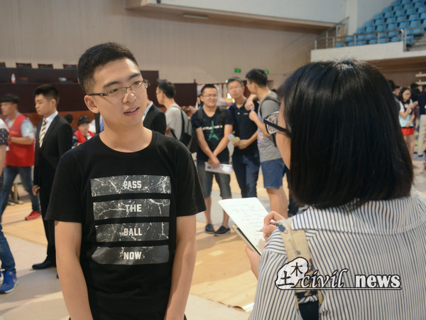 由于已有几次招聘会,所以参加本次招聘会的土木人有限。13级3班的唐受民,在暑假精心制作了简历,利用简历对自己进行了全面的介绍,突出展现了亮点。他说自己不是第一次来到招聘会,也曾有过一些经验,对于面试一事心态比较平和,希望能够找到满意自己且自己满意的分公司。