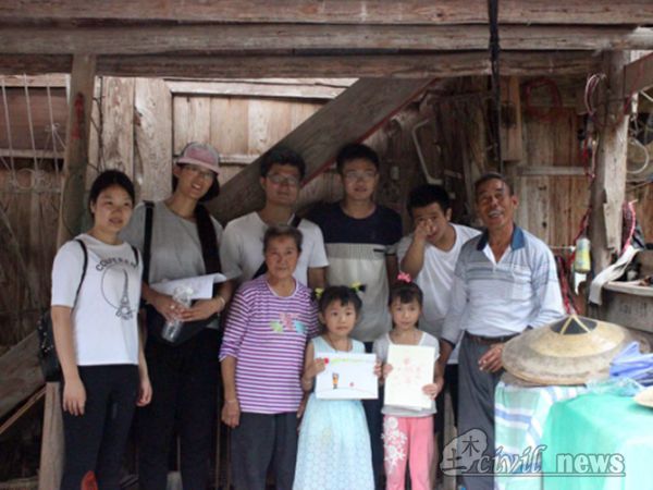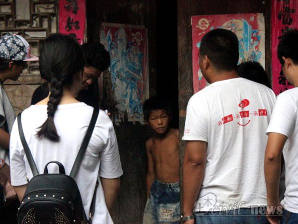第二支队接着又走访了几户。中间遇到一个羞涩的姑娘,她叫张双凤,她还有个弟弟。双凤的奶奶特别和蔼,和志愿者们一起聊了小双凤的一些情况。双凤小朋友家里情况不乐观,爸爸遭遇车祸,妈妈改嫁,至今已有几年未归。可能正是因为这样,面对志愿者们,她的羞涩更像是自闭症,志愿者们只能主动找话题。开始的时候她只会被动机械地回答“嗯”,可后来聊到动画片和玩游戏,她开始愿意和志愿者们交流。在交流中,志愿者们发现她是乖孩子,成绩优异,只是不太爱说话。第二支队的成员们只能短暂停留,但是他们愿意用那颗真心去感化孩子们。