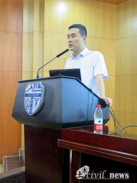 随后,崔凯副院长接过李书记的话筒,以一名土木人的身份为大家带来了解读。崔副院长首先通过一段详细的文字介绍了什么是土木工程,指出目前许多人关于土木以及建筑的盲区,并给予了解释。接下来,他用一连串的数字介绍了土木专业的学分、课程。崔副院长还用大量的图片向大家展示性吧