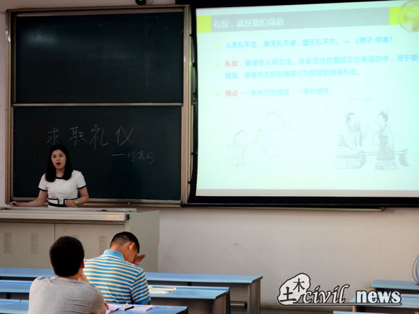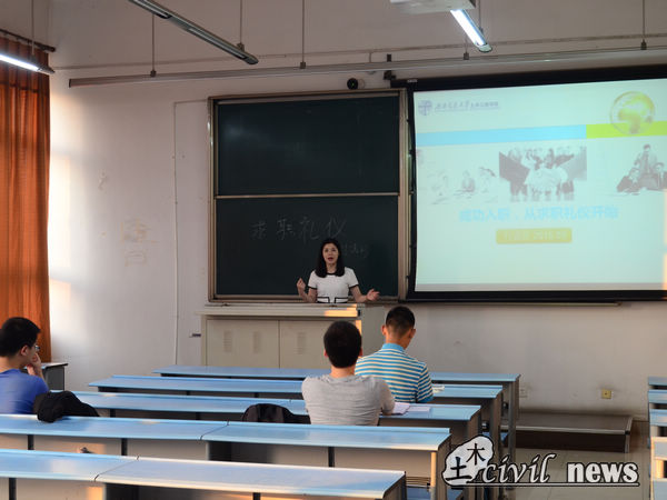 付真珍老师在X2427教室为即将毕业的土木专业的学子进行求职礼仪的讲述。提到应聘,在很多同学的眼里,更多的注重的是专业知识的考究,各种综合能力的展现等。其实,在此之中,求职礼仪也发挥着不可替代的作用。