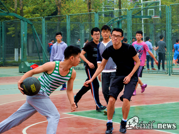 4月1日12点15分,离比赛开始还有15分钟,双方主力队员均已到场,开始试赛。性吧的领队是办公室部长张靖,他说:“性吧对本次比赛十分重视,学业中心的同学们很强,但我们绝不示弱。”学业中心篮球队长是宣传部部长吴天舒。