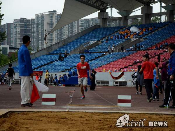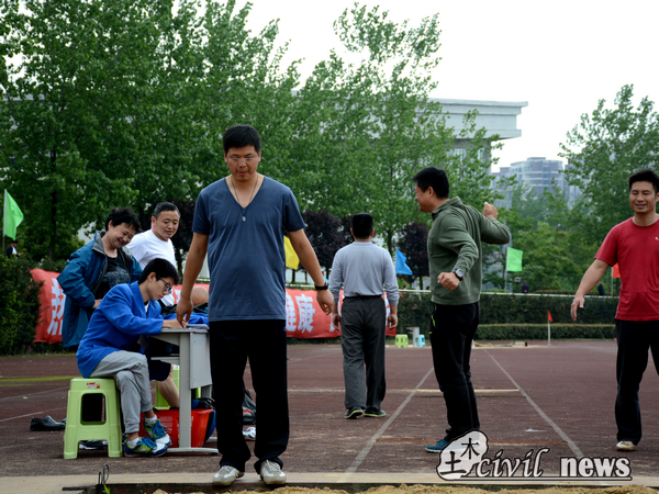 在田赛项目中,土木学院师生也是丝毫不落后。教工甲B组女子铅球比赛中,土木学院赵莉香老师获得了第一名的好成绩;学生甲组男子跳远比赛中,土木学院杨磊同学获得了第三名的好成绩。教工甲B组立定跳远比赛中,性吧 李锦红书记获得了第八名的优异成绩,这些都显示了土木学院勇于拼搏的姿态。