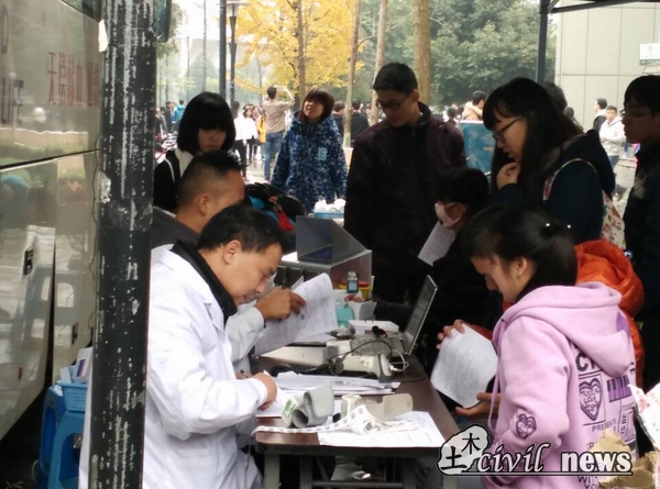 青年志愿者协会无偿献血志愿宣传服务队于2015年12月4日举行了以“采血车进校”为主题的献血活动。