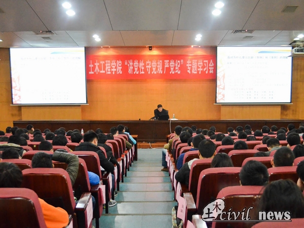 犀浦党支会主办的“讲党性、守党规、严党纪”专题学习会在犀浦校区图书馆一号报告厅顺利举行。本次报告会由李锦红书记担任主讲,参与听讲的人员是土木学院的正式党员和预备党员。会议通过对《中国共产党廉洁自律准则》和《中国共产党纪律处分条例》的解读,希望在座的每一位党员能够充分认清自己的身份,修身养性,争取努力地把党的纪律、党的准则做到内化于心,外化于行。