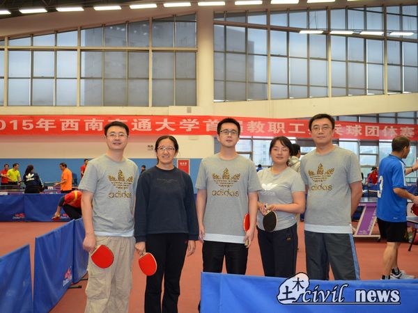 校体育部和教职工乒乓球协会承办的首届教职工乒乓球团体赛在犀浦校区乒乓球馆顺利举行。本次比赛共有16支代表队,参赛的运动员主要是本校的校工会会员以及在职的教职工。该比赛本着“我参与,我快乐,我运动,我健康“的主旨和”每天工作一小时,健康工作五十年,幸福生活一辈子”的理念,全面展现了教职工团队协作,勇于拼搏的“国球精神”。