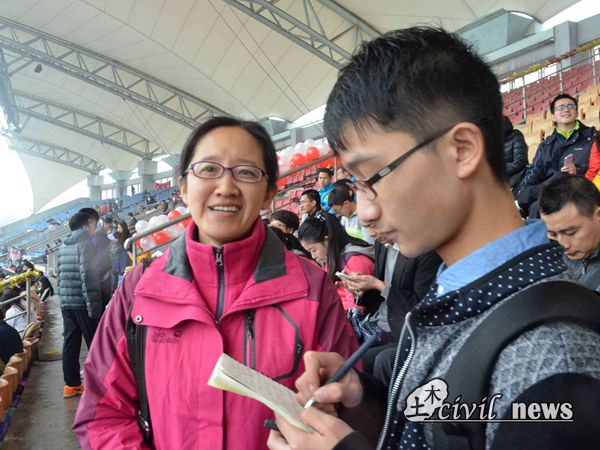 随后,土木学院党委副书记李锦红和李彤梅也接受了采访。据李彤梅书记介绍,我校十分重视体育,全校运动会按照“一年一小办,两年一大办”的原则已持续进行了多年。她希望师生们在繁忙的工作和学习生活中能够体会到学校的良苦用心,加强锻炼,争取以健康的状态和积极向上的精神面貌去面对一切。在接受采访时,李锦红书记表示,好的运动会就是让大家在运动的拼搏中感到快乐,并且有所收获,只要能够挑战自己,让自己有所超越,都是值得称赞的。李锦红书记希望土木学子能够奋勇拼搏、铸就辉煌,学会不骄不躁、不弃不馁。