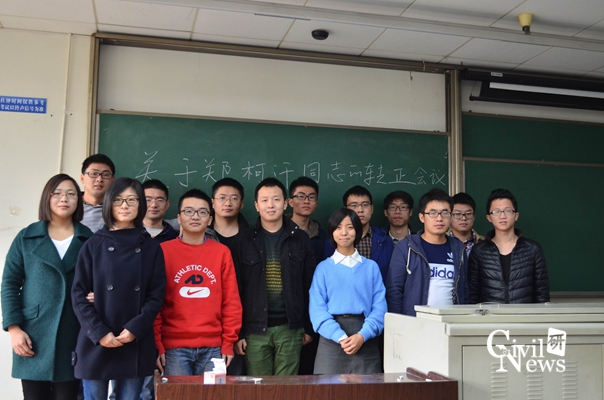 11月25日中午,桥梁专硕二班的同学在逸夫馆4310进行了党员交流会议暨郑柯汗同学的党员转正会议。