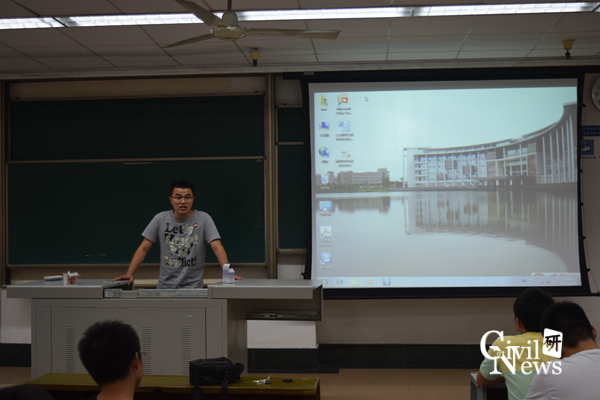 接着,为了让新成员快速的投入到马上到来的新闻工作中去,王国栋学长凭着自己多年来的摄像技术和去年一年的工作经验,给新成员做了摄影入门培训。