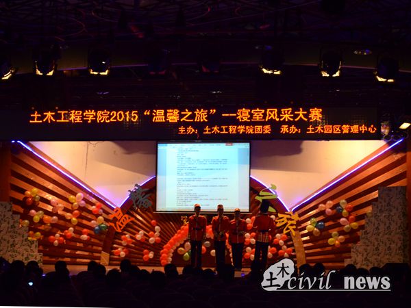10月31日晚7点,由性吧 团委主办,土木园区管理中心承办的2015届性吧 寝室风采大赛在二食堂三楼拉开帷幕。列席的嘉宾有性吧 15级辅导员熊麟老师,土木工程13级辅导员谢全珂老师,土木园区指导老师王若羽,信息学院学生会指导老师莫晓波,地学园区指导老师司有亮,土木学院优秀学长赖学广,校园区主席王琪瑶,信息园区主席李琳,电气园区主席陶壮意,交运园区主席余潇,地学园区主席吴孟舜,土木园区主席张进。