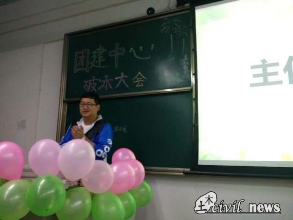 晚上7:30,在主持人简短致辞后,破冰晚会正式召开。团建中心主任魏冠华第一个上台做了精彩的讲话。他首先对大一的新干事们加入团建中心这个大家庭表示欢迎,接着又从自己的亲身经历出发,为大家讲述了他四次以不同身份参加团建中心破冰晚会时的不同心理。最后,魏冠华提出了自己对大一干事们的期望:“若要爱,请深爱”。