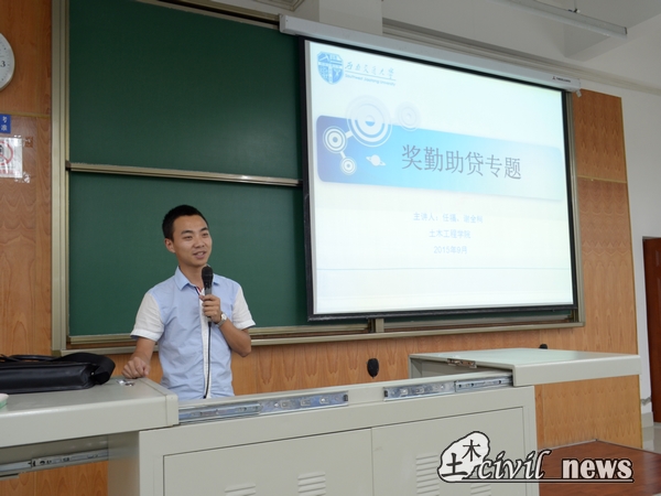 9月17日晚7点,土木学院在犀浦校区X4157、X4158召开奖勤助贷专题讲座。13级辅导员谢全柯和14级辅导员任福负责本次课堂主讲,向2015级新生系统地介绍学校的奖励与资助机制。