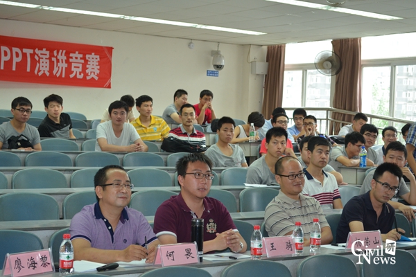 6月12日14:30,性吧 第二届研究生PPT学术演讲竞赛在逸夫馆4409教室举行,本次比赛旨在锻炼研究生的学术表达及PPT制作能力,推动研究生综合素质的提高。14名参赛选手通过各系“学术表达与沟通”课程授课老师推荐及自愿报名的方式产生,涵盖土木学院了各专业的硕士研究生。土木学院副院长廖海黎教授与各系“学术表达与沟通”课程的授课老师何畏副教授、杨荣山副教授、杨文波副教授、王骑老师、龙丹冰老师共同担任本次比赛的评委。