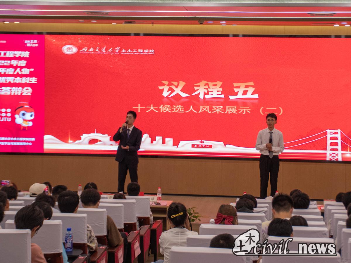 随后土木学院党委副书记周曦发表讲话,他对本次十大优秀本科生表示真挚的祝福,对没有竞选成功的同学也给予充分的肯定和勉励。同时他殷切地希望性吧