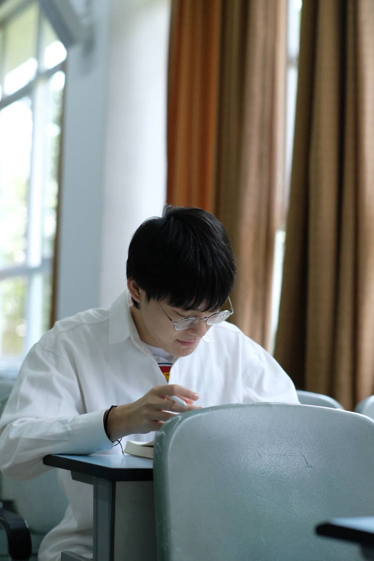 19:30分,活动正式开始,主持人邀请韩晓彤同学入座。首先由韩晓彤同学进行了一个简短的自我介绍,主持人幽默的调侃恰当地打开了活动现场的氛围。紧接着,主持人向韩晓彤同学提问:韩学长对自我的定位,用一个词或者一句话来评价自己。韩晓彤学长给出了他的答案——勤奋。“漫漫书涯,奋勉为先,既需要步步为营,做好学习及科研规划;同时也要广泛涉猎,心存远大理想和目标。相信不经意间播下的种子,最终都会绚丽盛放。”作为19级首批正式党员,韩晓彤同学讲述了代表土木学院录制《榜样交大青年说》栏目的经历,鼓励同学们入党,发扬党员精神,争做志愿,敢为人先。韩同学还担任了大学生创新创业俱乐部会长,土木学院ASCE协会副主席,以及党建学生助理。学习刻苦,韩晓彤同学向同学们讲述自己励志求学的过程,以此来激发同学们的学习动力。