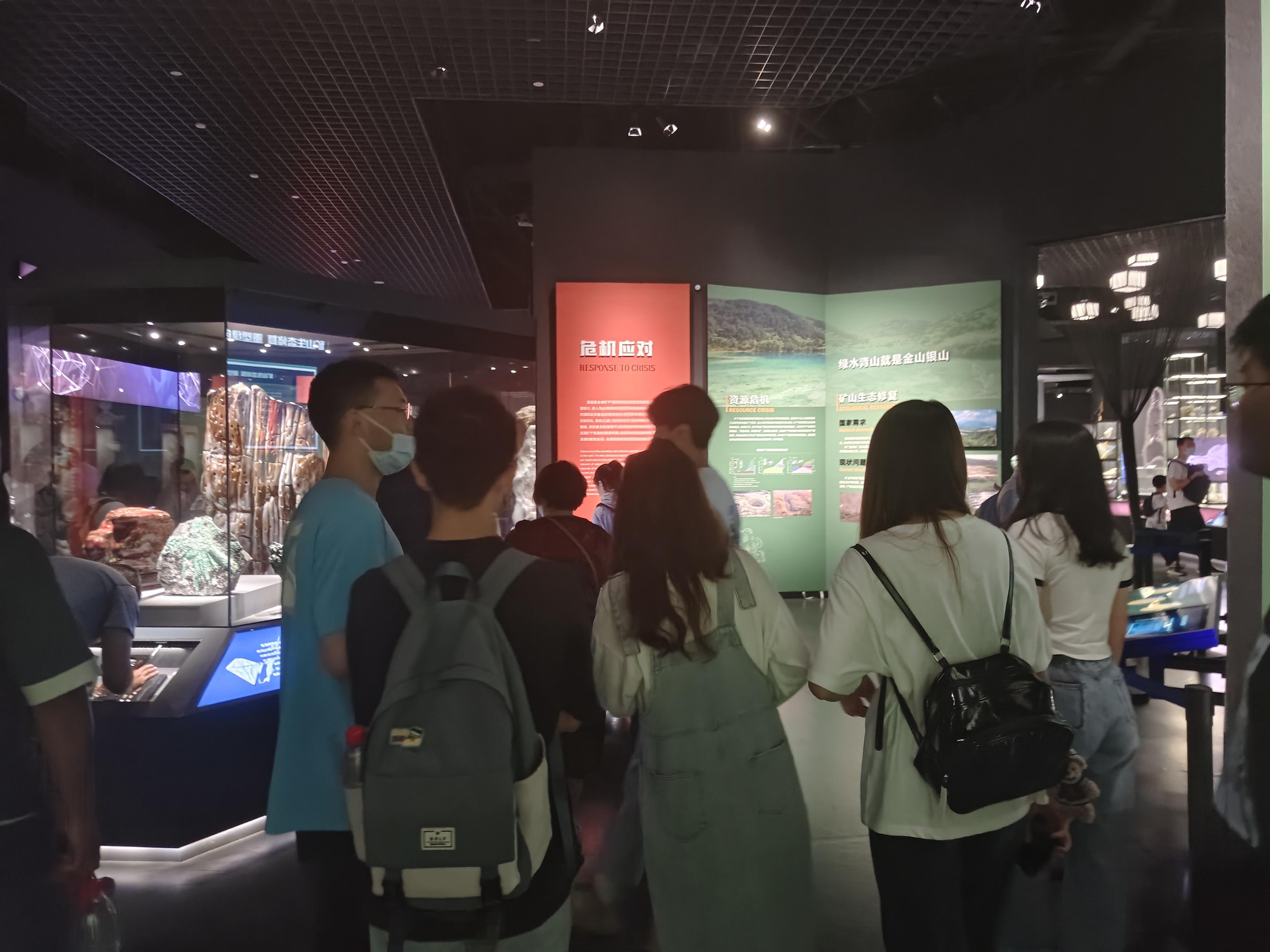 其中地质环境厅主要展示了四川盆地和成都平原的形成、四川丰富的地学旅游资源、四川易发的地质灾害类型以及防灾减灾与科技应用等内容。参观过程中同学们还利用本学期学习到的土木工程地质的相关知识,对展览内容进行了讨论和交流,活动在有说有笑的气氛中有序进行着。