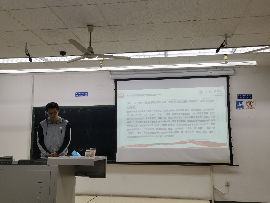 2021级硕士岩土1班党支部在九里校区逸夫馆4404B教室召开支部《山河岁月》党史专题学习生活会。本次学习活动由2021级硕士岩土一班党支部书记徐明晖同志主持,赵文鼎同志记录,全体党员和部分入党积极分子参与。