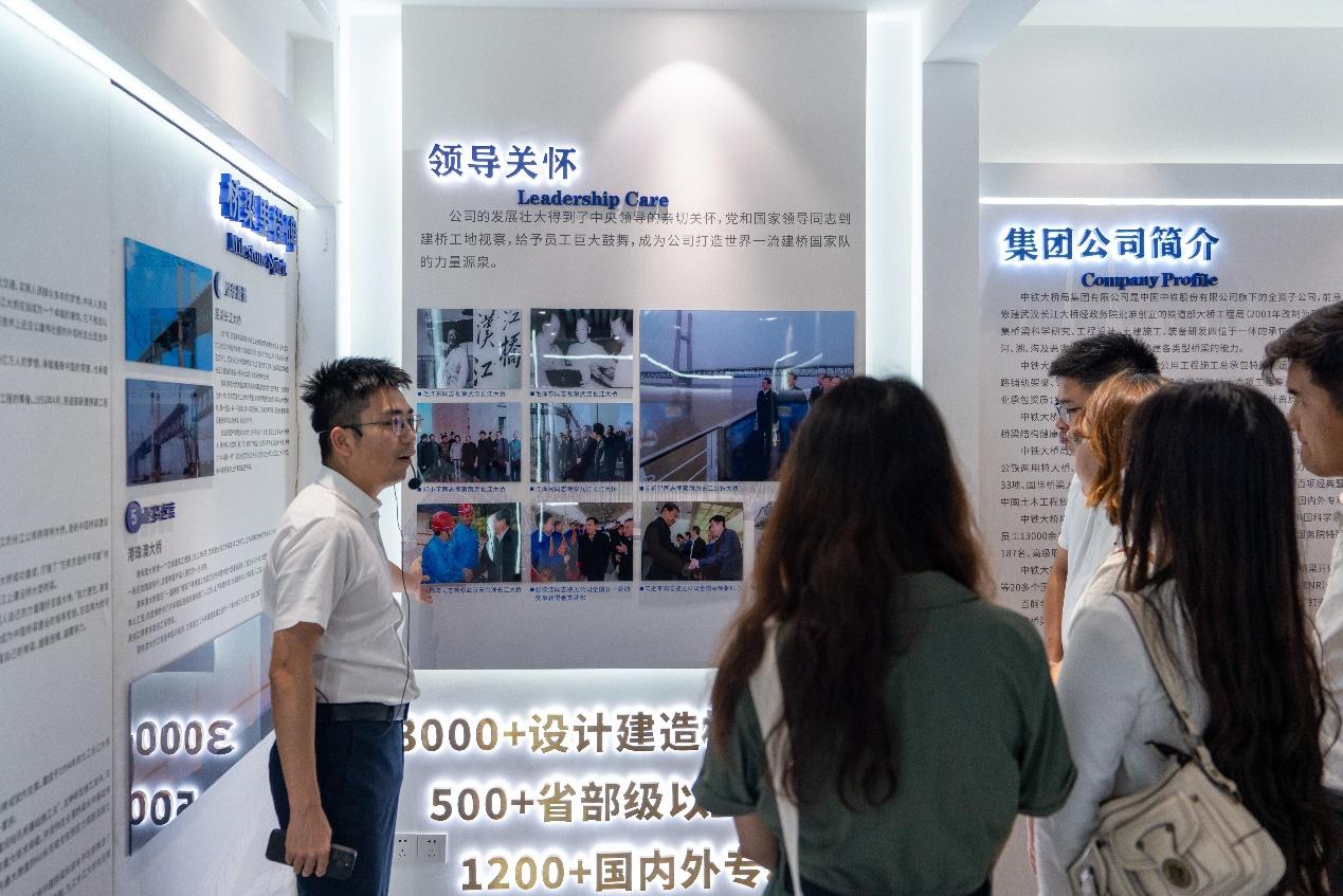 8月24日上午,在中铁大桥局九公司人力资源部部长王丽的带领下,队员们前往大桥局九公司深中通道项目参观。深中通道项目作为一项重要的交通基础设施工程,其规模和复杂性令同学们惊叹。巨大的隧道和桥梁工程充分展示了工程师在地质勘探、结构设计、施工安排等方面的卓越能力。工程师团队不仅要应对技术挑战,还要克服自然环境和地质条件带来的种种困难,这种坚韧的毅力和智慧让同学们印象深刻。在与校友学长的交流中,中铁大桥局深中通道项目书记陈剑波(校友)勉励他们充分利用好学校提供的广阔舞台,为个人的幸福人生、行业的高质量发展、国家的伟大复兴而不懈奋斗。