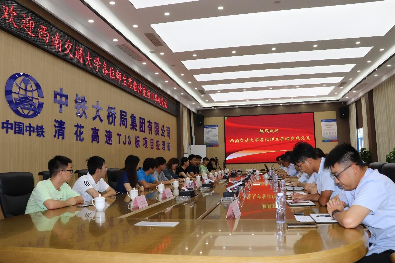 8月24日下午,队伍前往中铁大桥局九公司公司总部。在大桥局九公司团委书记杨凝的带领下,同学们参观了大桥局的展厅,了解了大桥局的发展历程和建造的许多宏伟工程,对大桥局的性吧有了更深入的体会。随后,实践队同大桥局九公司开展了交流座谈,公司总经理宁晓冬首先介绍了集团发展沿革、主要业务及党建成果,肯定了交大学子在集团的表现和贡献,介绍了集团在人才需求的政策举措,并对今后企业所需技术型人才的能力、素质等方面的需求与学院进行了探讨。在会上,领导们耐心解答学生的问题,气氛热烈。
