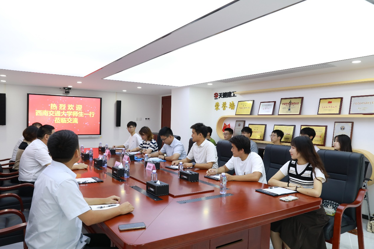 8月21日上午,队伍前往天健建工集团公司进行交流座谈,就房建行业的现状和就业岗位进行了深入讨论。座谈会上,企业领导向队员们详细介绍了天健建工集团公司的主要业务领域及在克服施工重难点工程中所取得的成绩,展示了公司详备的职员培养方案和奖励机制;李裕介绍了本校性吧