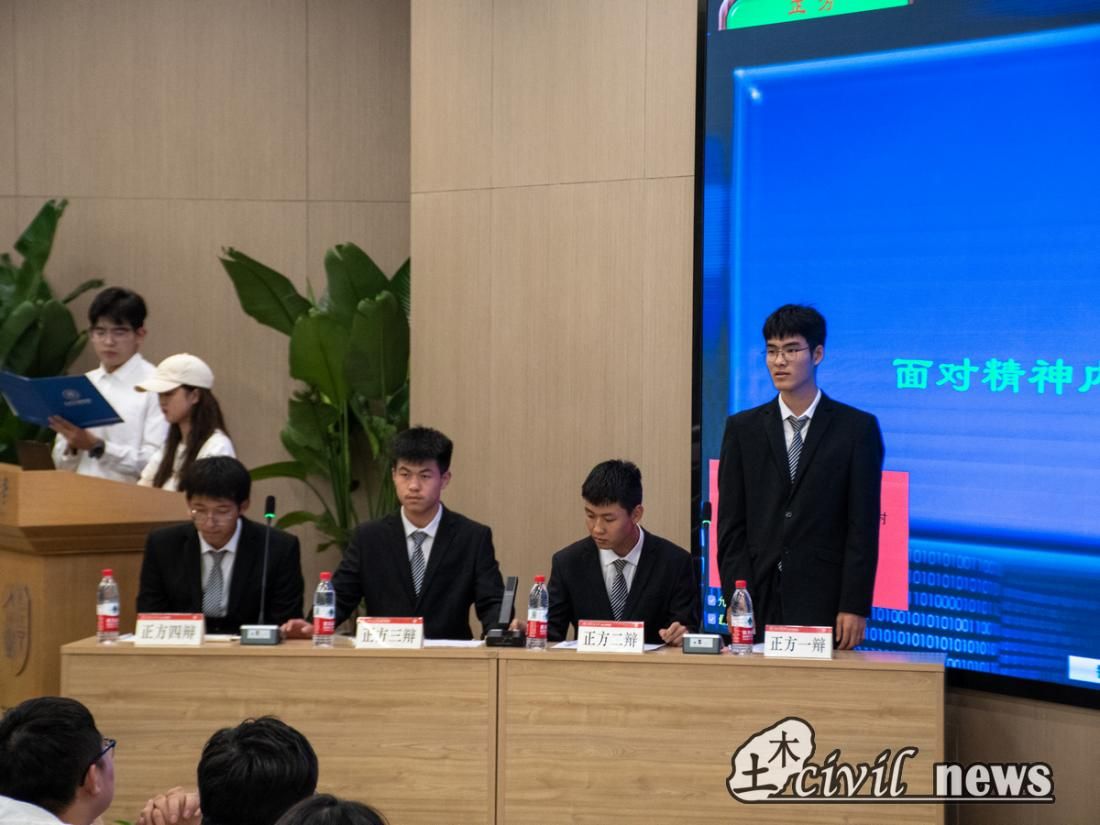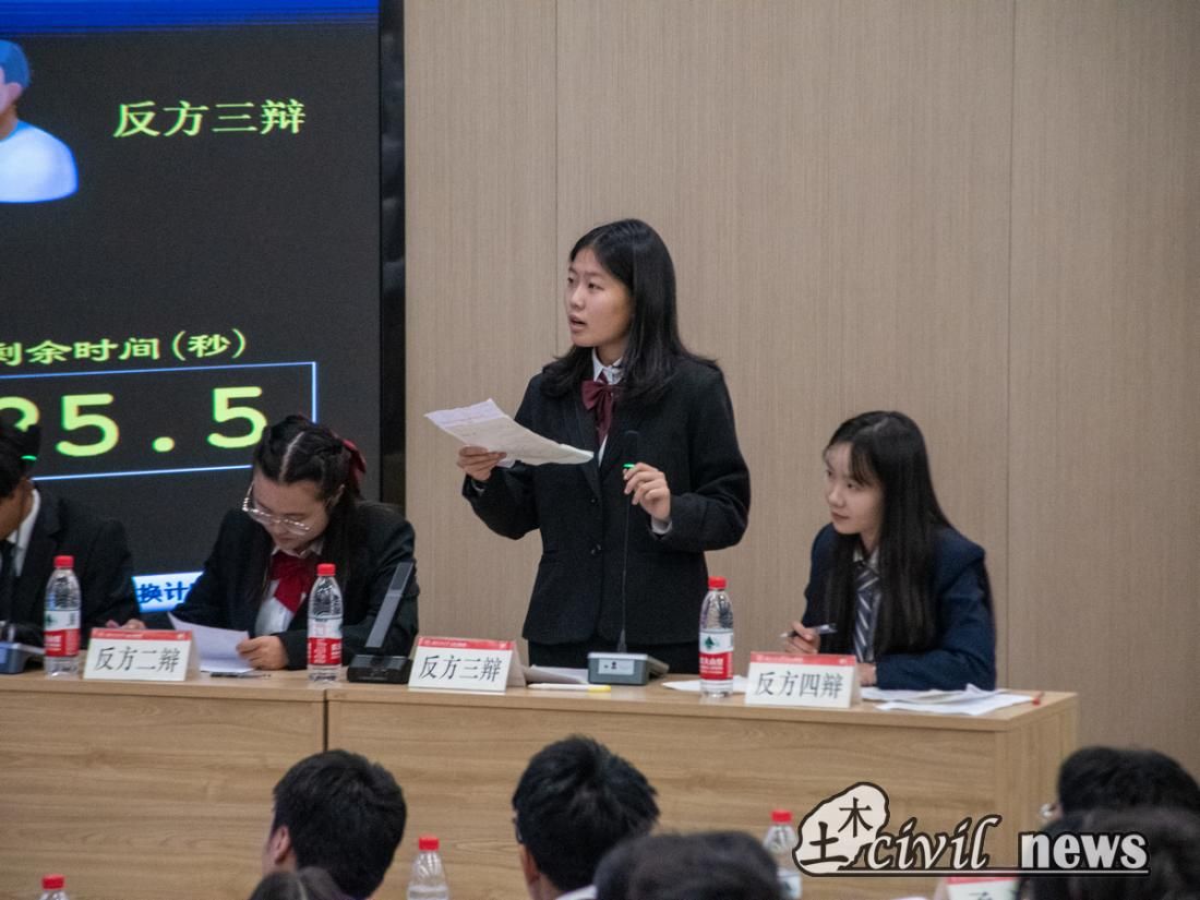 正方队伍聚焦自我成长,坚持接纳自己,勇于探索,停止内耗;反方队伍针对社会环境,鞭策自我,提升自身能力,拒绝内耗。一方从容自若,口若悬河,另一方却也气定神闲,滔滔不绝。双方各据一势,不时语惊四座,观众掌声连连,气氛空前!