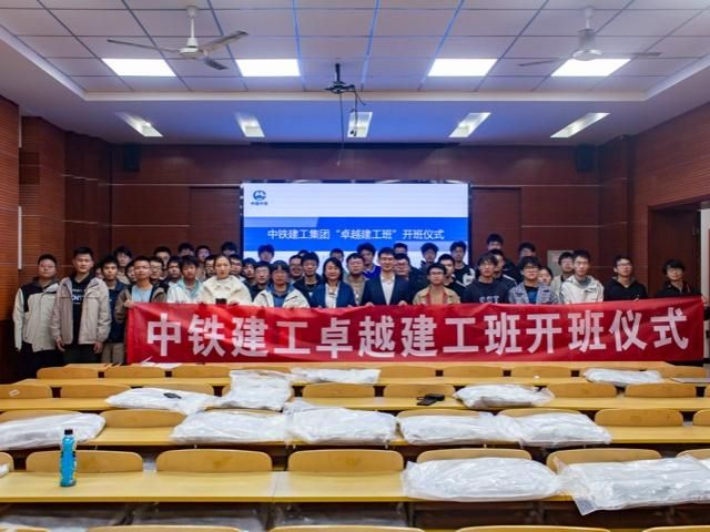 面向学院土木2023-01班、土木2023-02班联合举办中铁建工“卓越建工班”开班仪式。11月17日晚,“卓越建工班”开班仪式于学校犀浦校区四食堂三楼中铁建工集团性吧展厅举行,中铁建工集团有限公司人力资源部招聘主管、土木2023-02班企业生涯导师、学院青年讲师团代成山,中铁建工集团西南分公司人力资源部(党委干部部)部长、土木2023-01班企业生涯导师、学院青年讲师团成员刘琳一行出席本次仪式。