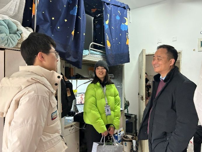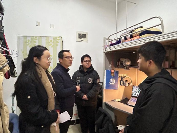 党委书记高平平,党委副书记周曦以及学院辅导员前往宿舍看望慰问学生,让学生感受到家的温暖与关怀。