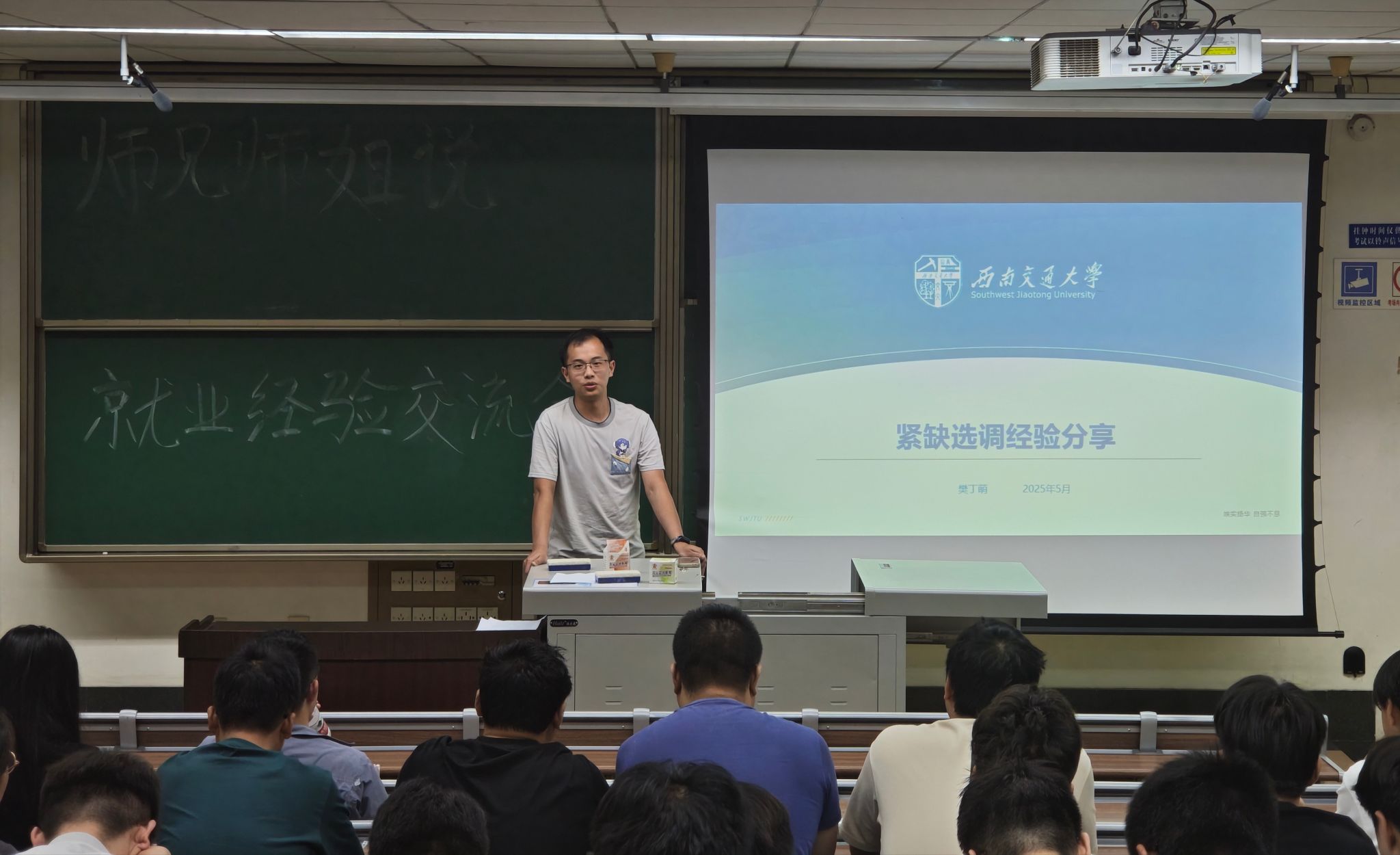 2025 年 5 月 8 日 19:30,由土木研究生事务中心主办的第十一期 “师兄师姐说” 就业经验分享会于九里校区 4323 教室成功举办。本期活动特邀交通运输专业周思源师兄和土木水利专业樊丁萌师兄担任主讲人,围绕紧缺选调生招录政策与备考策略展开深度分享。