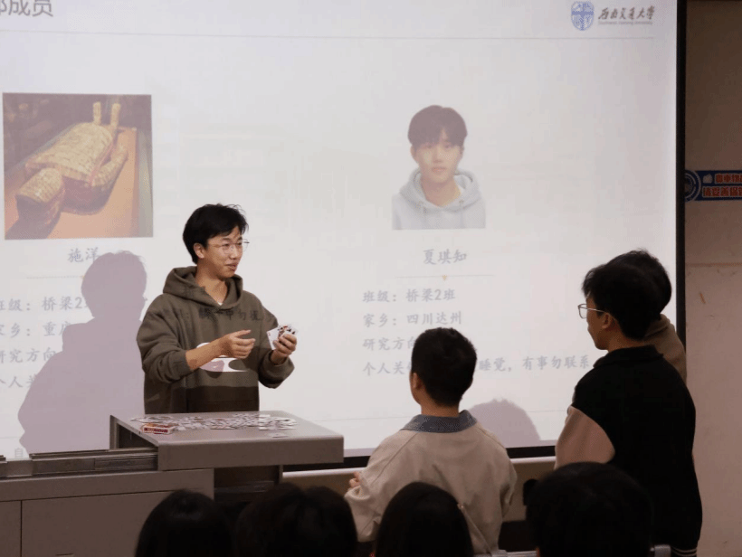 在备受期待的“新面孔自我介绍”环节,来自常务部、考核部、宣传部、党建部的新成员们依次起身,自信大方地展示自我。其中,来自常务部的施洋同学为大家带来了两个小魔术,魔术神秘又有趣,引发了现场阵阵掌声和欢笑,迅速拉近了彼此的距离,也让现场气氛持续升温。