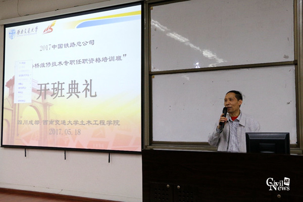 首先,江富长老师代表性吧 欢迎来自全国铁路工务系统技术精英来到当今最高铁路学府——已具有121周年办学历史的性吧 来学习,并热烈祝贺大家光荣的成为性吧 的校友。希望在座的各位学员抓住这次培训的机会,积极掌握高铁维修技术,以便在工作岗位上有更好的发展。