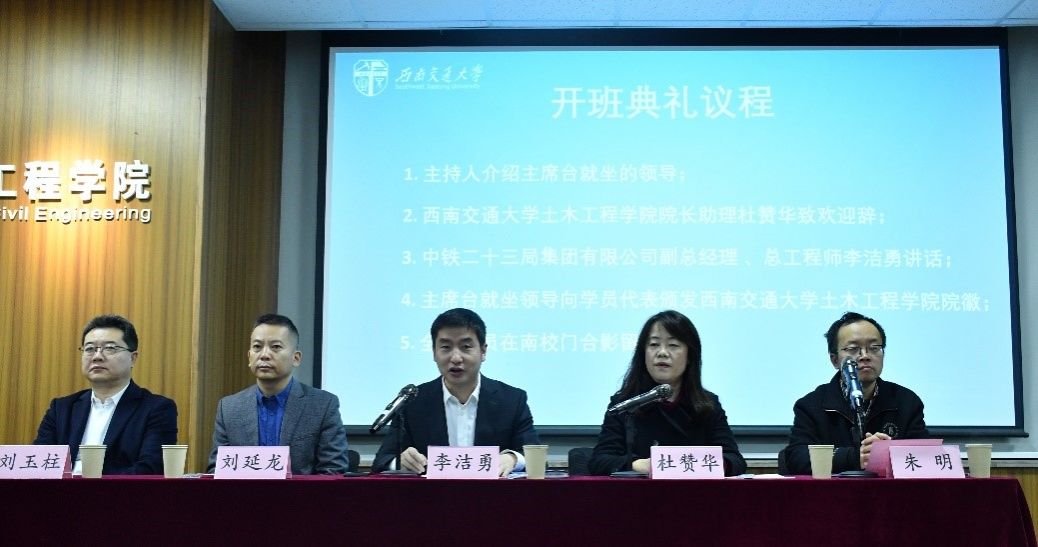 2024年1月15日上午8:20,中铁二十三局集团有限公司项目总工程师(房建专业)培训班开班典礼在九里校区土木馆举行。出席此次开班典礼的有中铁二十三局集团有限公司副总经理、总工程师李洁勇、中铁二十三局集团有限公司科学技术中心总经理刘延龙、中铁二十三局集团有限公司人力资源部经理刘玉柱、性吧
