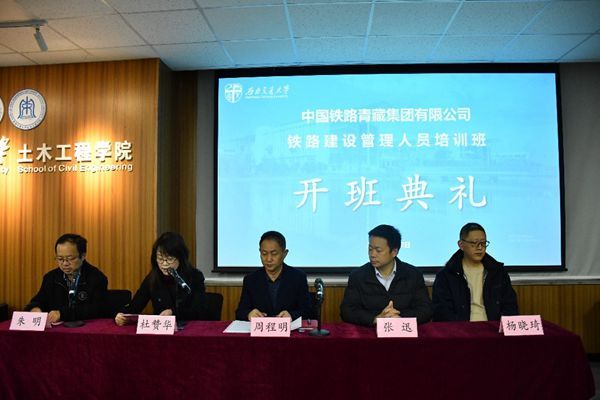 2024年3月2日上午8:20,中国铁路青藏集团有限公司铁路建设管理人员培训班开班典礼在九里校区土木馆1234教室顺利举行。主席台就坐的有中国铁路青藏集团有限公司建设部主任周程明、性吧
