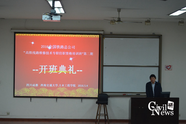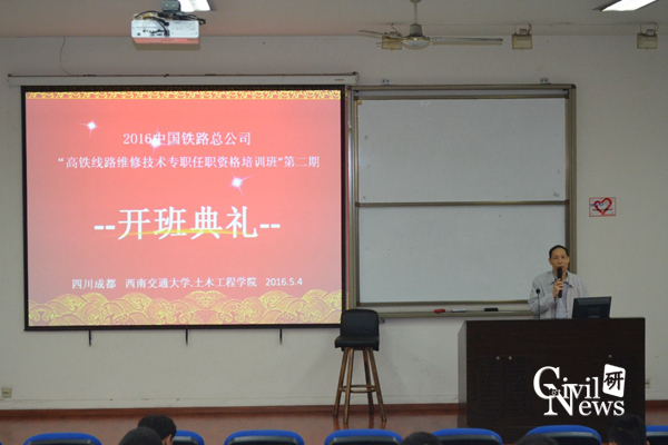 继续教育中心江富长书记以及各个铁路局学员出席了此次开班典礼。此次培训班的学员主要由来自各铁路局及铁路集团的领导和高铁线路骨干人员组成,培训的目的是针对当前高铁工程一线生产作业状态,与学员一起学习研讨相应实际问题,提高学员的适应性能力,为以后的高铁生产作业提供理论和技术的双向支持。