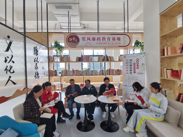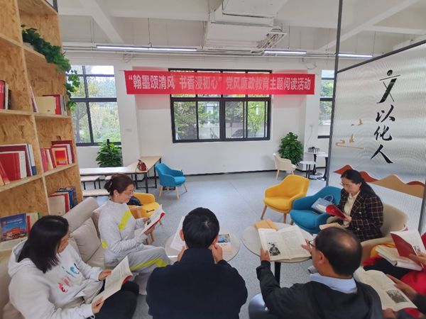 基础课党支部在九里校区工业中心G座一层学院阅览室开展了“翰墨颂清风 书香浸初心”党风廉政教育主题阅读活动。