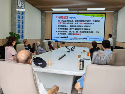离退休第一党支部的一次特色党建活动。在讲座中,赵教授向大家讲述了桥的起源、基本组成及类型,介绍了桥的一生及其社会价值,展现了我校在推动桥梁技术进步和发展方面所作出的突出贡献。