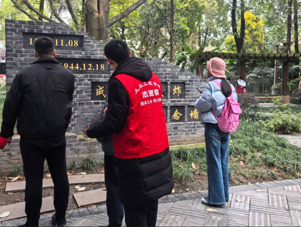 图8 参观成都大轰炸纪念墙
