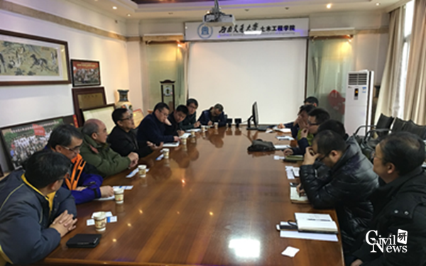 开展学术交流。会议由土木学院院长助理占玉林副教授主持,建筑材料教研室主任叶跃忠教授、隧道工程系主任晏启祥教授、道路与铁道工程系副主任杨荣山教授、土木学院王士民副教授、徐腾飞副教授、崔圣爱副教授、李福海高级工程师以及学院科研秘书许浒老师参加了此次会议。