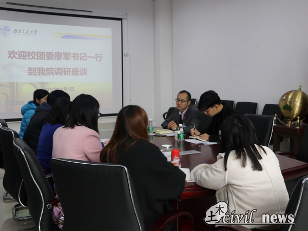 分团委调研交流座谈会于犀浦校区X4312会议室如期举行。与会人员有:校团委书记廖军、校团委兼职副书记陈景适,性吧