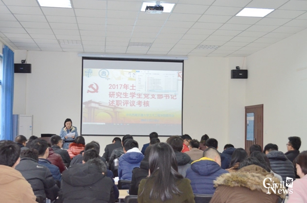 随后,答辩按照2014级到2017级、博士班党支部到硕士党支部的顺序依次展开,一共48个党支部。各位党支部书记分别对各自党支部的建设工作进行汇报,其中,三会一课开展以及支部特色活动为重点汇报对象。