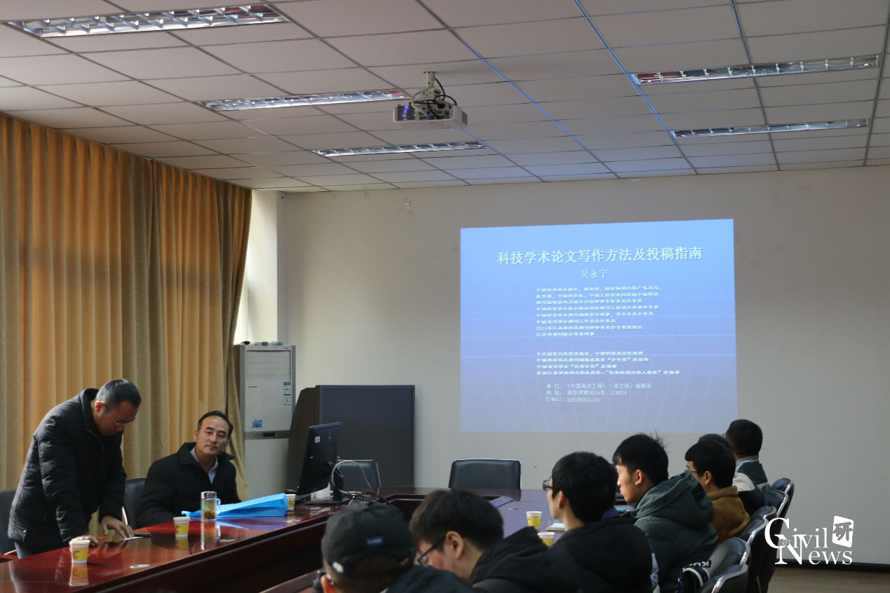 2017年12月23日上午十点,在我校九里校区土木馆1324室举办了以“科技学术论文写作方法及投稿指南”为主题的学术讲座,本次讲座的主讲人为吴永宁高工,由我校性吧